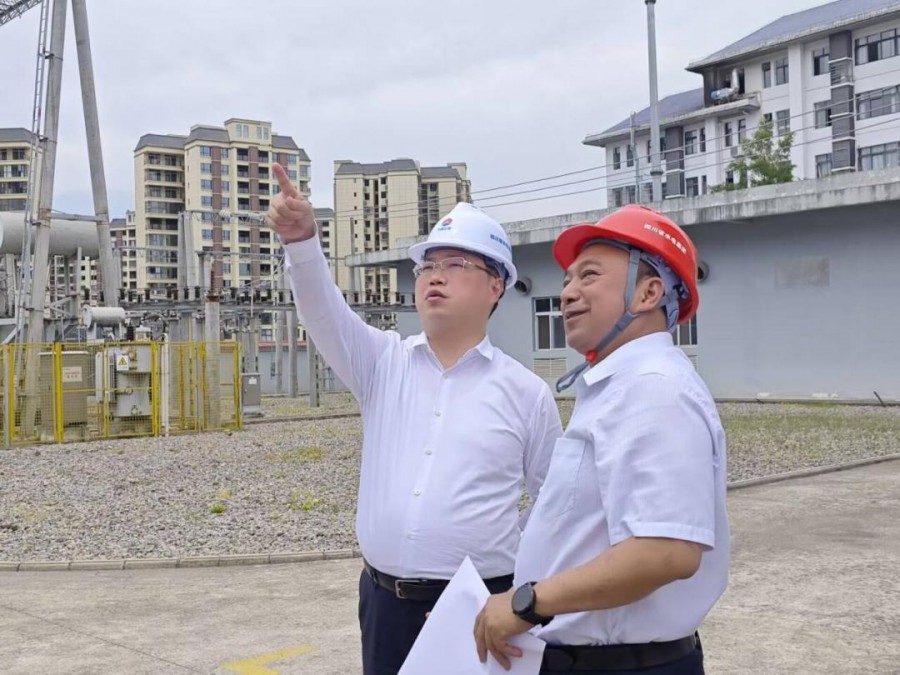 在萬源公司城東變電站,朱挺聽取萬源公司黨委書記、執(zhí)行董事、總經(jīng)理吳偉昌關(guān)于托底性幫扶電力項(xiàng)目建設(shè)工作匯報(bào),詳細(xì)詢問電網(wǎng)建設(shè)項(xiàng)目進(jìn)度,對(duì)萬源公司一直以來致力于電網(wǎng)前瞻性規(guī)劃建設(shè),優(yōu)質(zhì)高效服務(wù)于萬源市域經(jīng)濟(jì)社會(huì)建設(shè)發(fā)展做出的努力和貢獻(xiàn)給予充分肯定。
